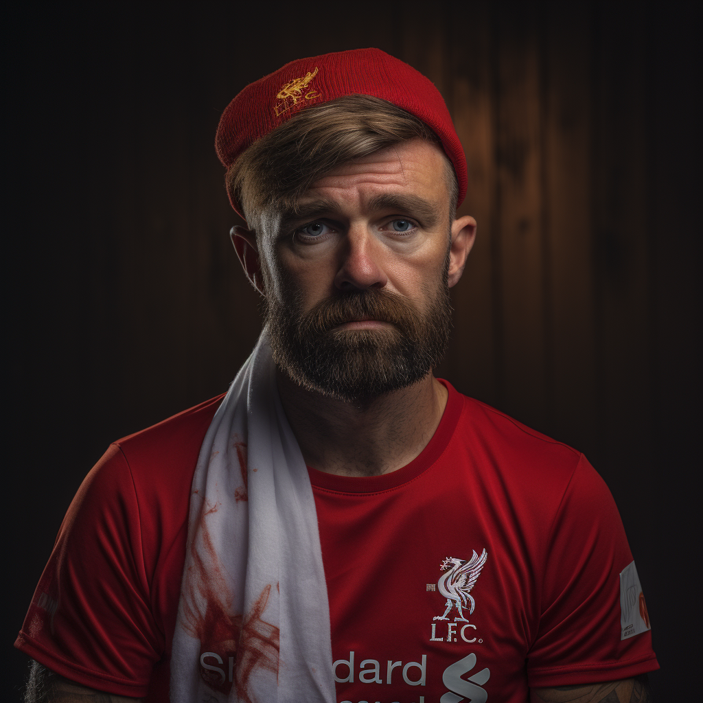 Die Stimmung ist gedrückt: Nach der Ankündigung, dass Jürgen Klopp am Saisonende aufhören wird, herrscht unter den Liverpool-Fans Unsicherheit. Die KI widerspiegelt den traurigen Blick, der sinnbildlich für die unsichere Zukunft des Clubs steht – und irgendwie sieht das Bild Klopp selbst sogar ähnlich!