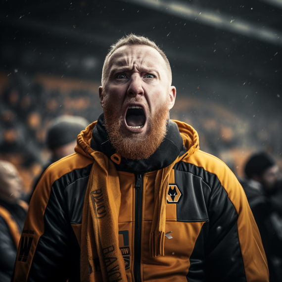 VAR-Drama, Endlos-Frust: Wolves-Anhänger erleben ein echtes Wechselbad der Gefühle. Die KI illustriert die Fans, die sich durch ständige Fehlentscheidungen benachteiligt fühlen – statt Klarheit bringt die Technik neue Unsicherheit.