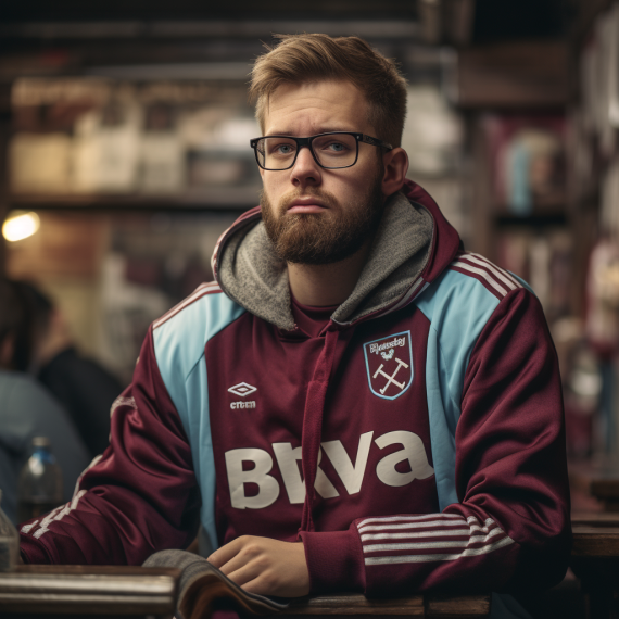 Von wegen Klischee: Stimmung bei West Ham ist dank Euroleague-Titel und cleveren Transfers positiv. Die KI zeigt stolze Fans, die nach vorne blicken!