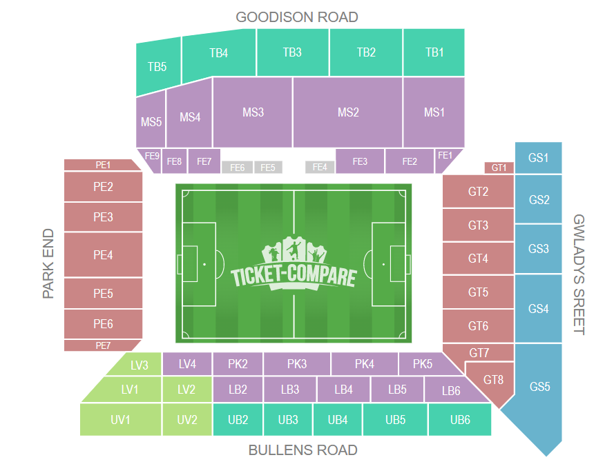 Everton spielt im traditionsreichen Goodison Park (39.414 Plätze). Goodison Park Sitzplan zeigt dir die besten Plätze für perfekte Sicht und Atmosphäre!